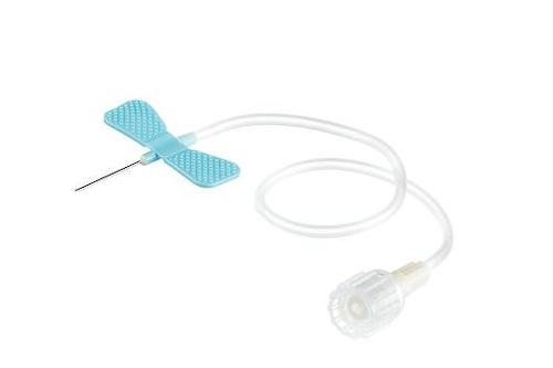 Souprava pro odběr krve / infuzi je sterilní jehla s křídly určená k jednorázovému použití připojená k ohebné hadičce s Luer adaptérem nebo bez něj.