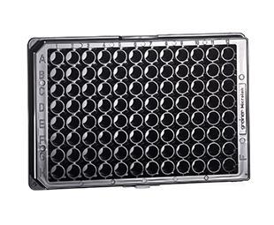 Mikrotitrační destička, PS, 96 jamek Profil jamky: F dno, cylindrická Dno: pevné Barva: černá Baleno po 10 ks Minimální odběrové množství: 40 ks