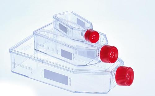 Lahev na buněčné kultury, vrstva Poly-D-Lysine Cellcoat® Růstová oblast (cm2): 175 Max. objem (ml): 650 Pracovní objem (ml): 20 -80 Červené šroubovací víčko s filtrem Baleno po 5 ks Minimální odběrové množství: 40 ks