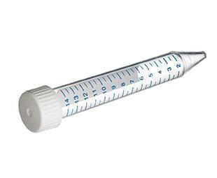 TUBE, 15 ML, PP, 17/120 MM, WHITE STANDARD SCREW CAP, BLUE GRADUATION, STERILE, 50 PCS./