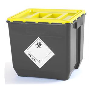 Jednorázová nádoba určená pro sběr a transport infekčního klinického odpadu, včetně ostrých předmětů a jehel. Víko nádoby je s hermetickým trvalým uzavřením, přičemž hermetické uzavření je zajištěno víkem s těsněním (lepidlem). Víko má boční úchyty pro snadnou manipulaci.