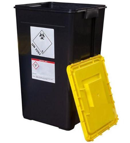 Jednorázová nádoba určená pro sběr a transport infekčního klinického odpadu, včetně ostrých předmětů a jehel. Víko nádoby je s hermetickým trvalým uzavřením, přičemž hermetické uzavření je zajištěno víkem s těsněním (lepidlem). Víko má boční úchyty pro snadnou manipulaci.