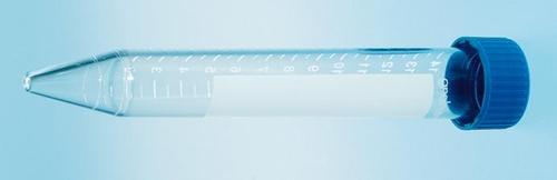 Zkumavka PS, kónické dno ø (mm) x výška (mm): 17 x 120 Objem (ml): 15 Sterilní Šroubovací uzávěr: modrý Stupnice Popisovací štítek Baleno po 100 ks Minimální odběrové množství: 1000 ks